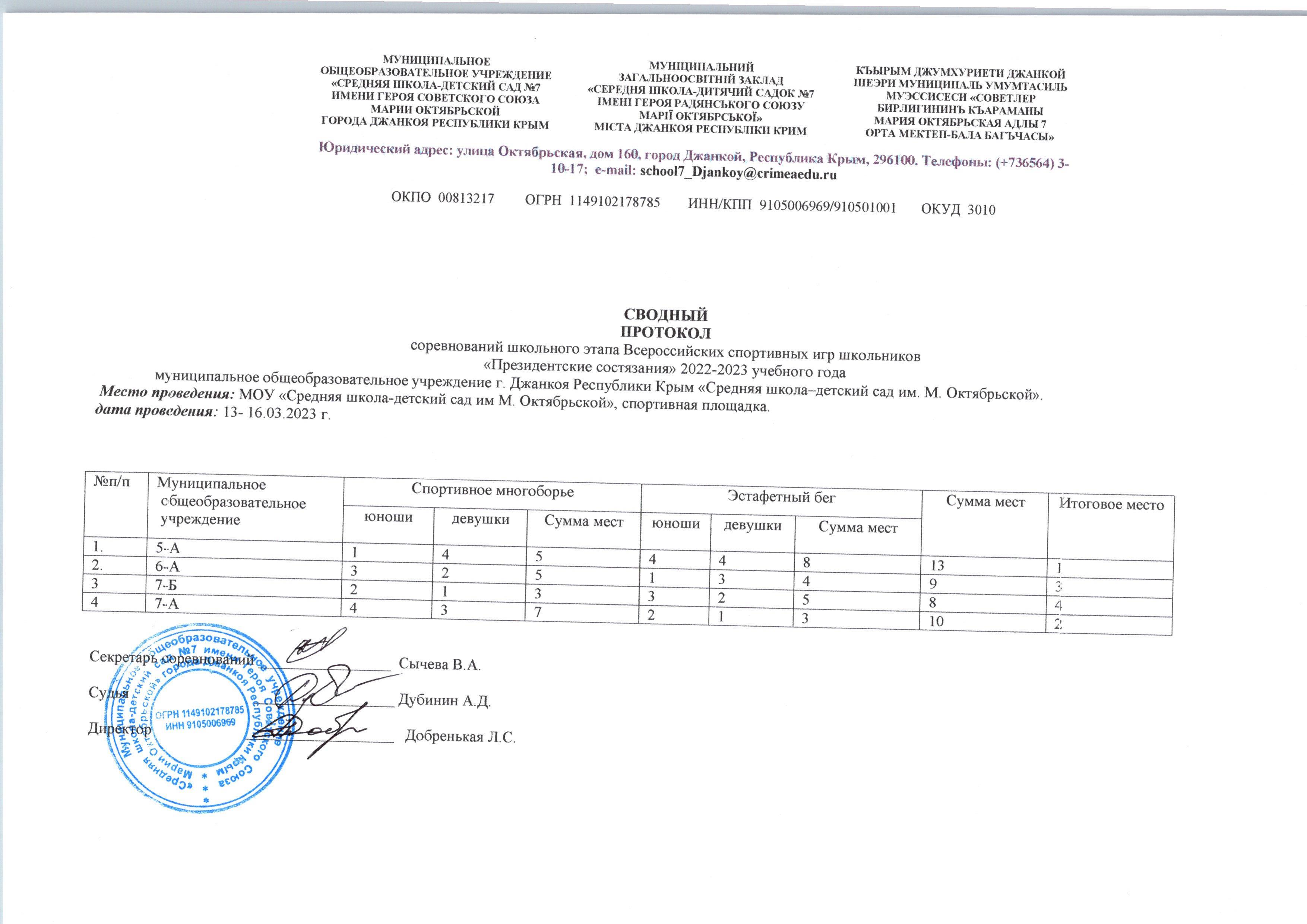 Муниципальное общеобразовательное учреждение "Средняя школа-детский сад № 7 имени Героя Советского Союза Марии Октябрьской" города Джанкоя Республики Крым