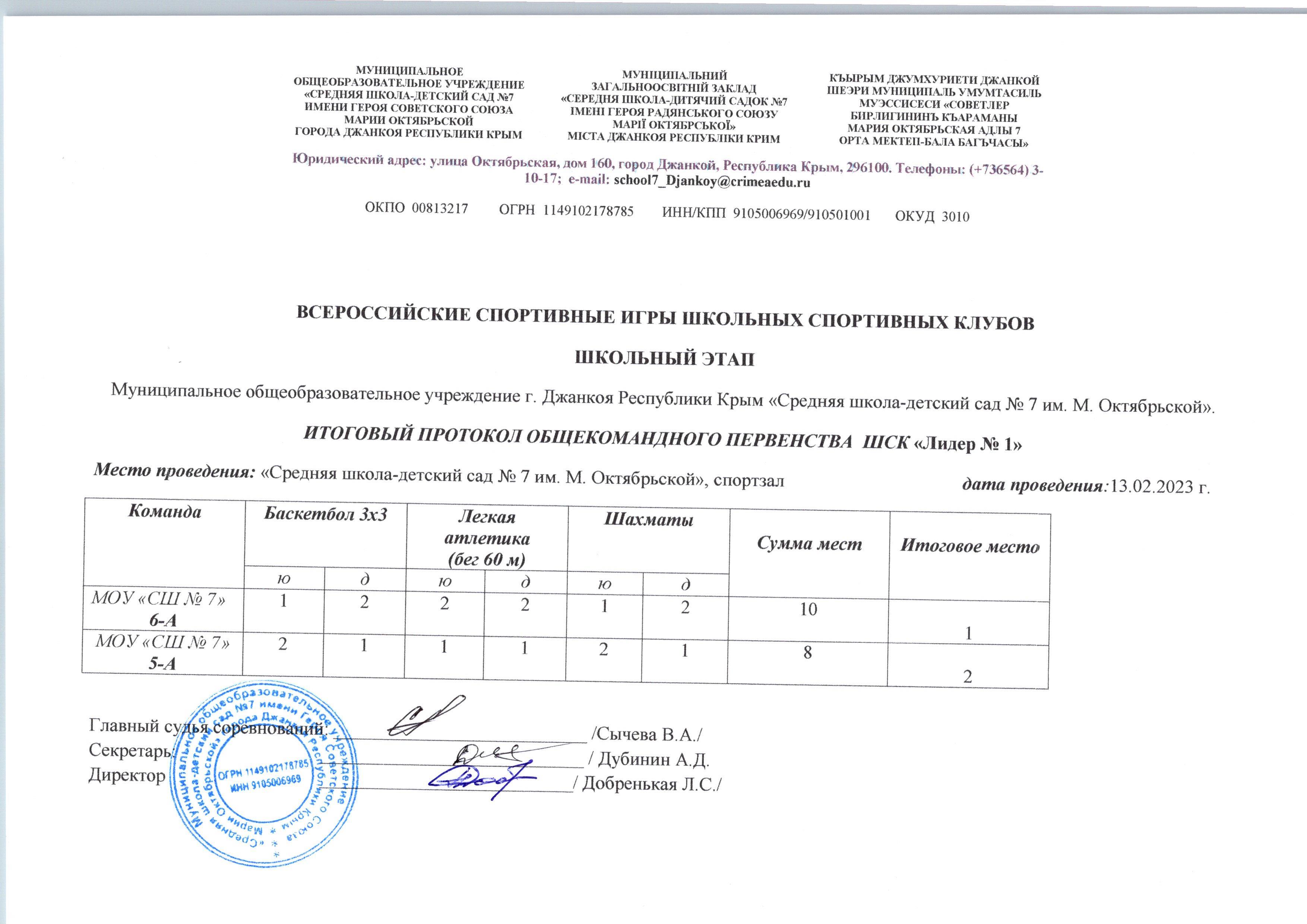 18- 19 января 2025 года муниципальным общеобразовательным учреждении города Джанкоя «Средняя школа-детский сад №7 им. М.Октябрьской» прошел школьный этап Всероссийских спортивных игр школьных спортивных клубов.