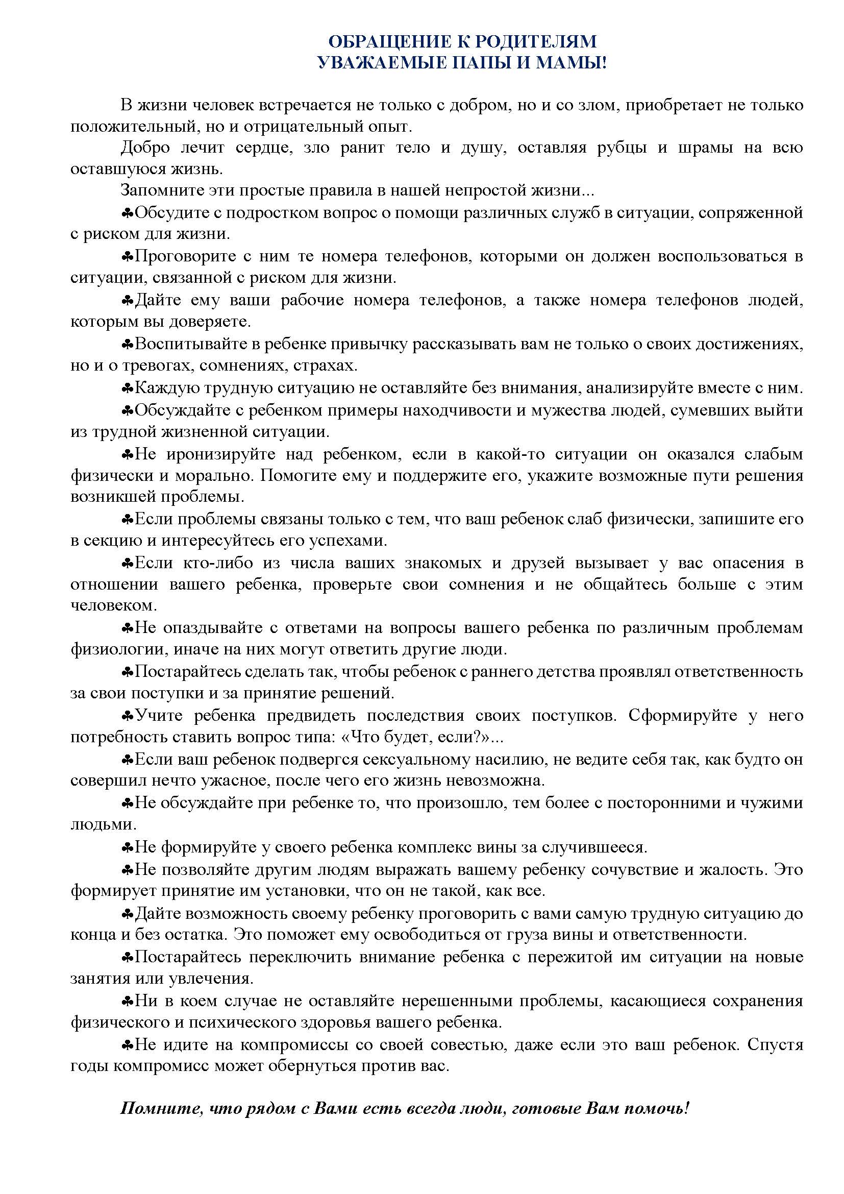 Социально-психологическая служба информирует
