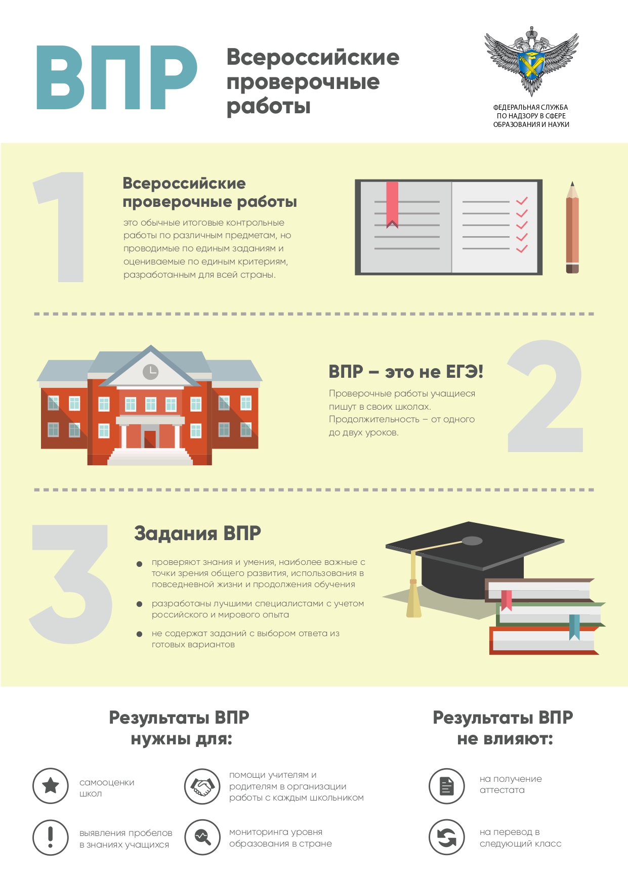 Федеральная служба по надзору в сфере образования и науки информирует о проведении в апреле-мае 2025 года мониторинга качества подготовки обучающихся общеобразовательных организаций в форме всероссийских проверочных работ.